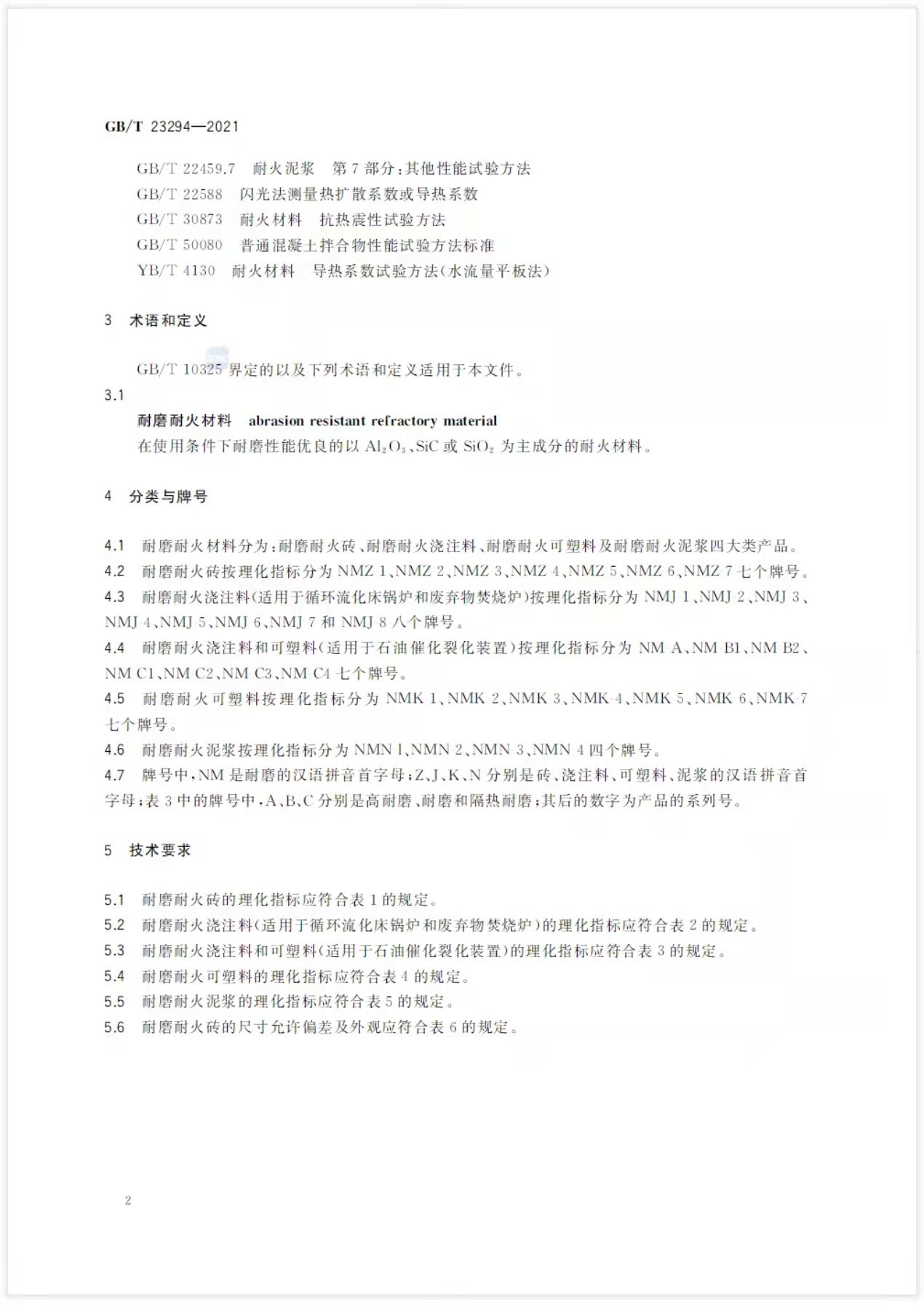 GB/T 23294-2021 耐磨耐火材料